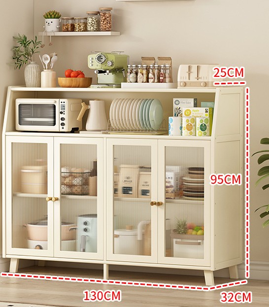 Alacena de bambú 130×32×95cm cuatro puertas Blanco