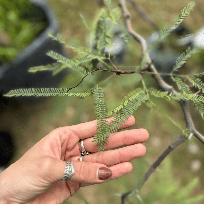 El Algarrobo chileno (Prosopis Chilenis) es un arbolito semicaducifolio (pierde hojas si hace mucho frío) de ramas zigzagueantes, copa redondeada y largas espinas que no suelen superar los 10-12 metros de altura. Presenta hojas bipinnadas con foliolos finos y alargados de color verde claro. Las vistosas inflorescencias cilíndricas amarillentas contienen numerosas flores pequeñas y apretadas. Sus frutos se consumen por los pueblos indígenas desde hace miles de años y poseen propiedades medicinales.