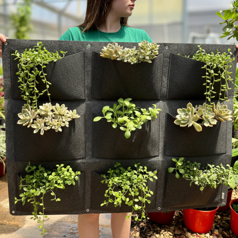 Dale vida a cualquier pared con un jardín vertical confeccionado íntegramente en material geotextil, ideal tanto para interiores como para exteriores. Su diseño está pensado para facilitar la instalación y proteger tu espacio: incluye una lona impermeable que se coloca entre la pared y el jardín para evitar la aparición de hongos y la retención de humedad.