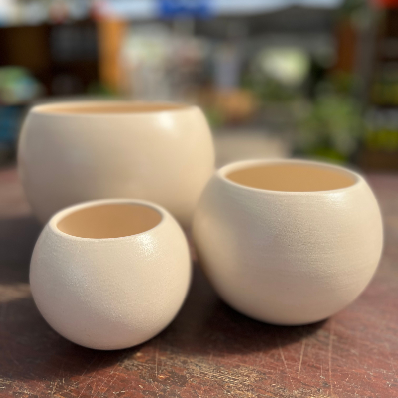 Las macetas esfera son ideales para interior ya que tienen un diseño moderno y minimalista que las hace perfectas para cualquier tipo de decoración. La cerámica en color blanco crema complementa perfectamente las plantas verdes y añade un toque de elegancia a cualquier espacio. Su forma redondeada les da un aspecto elegante y moderno, mientras que su tamaño permite que las plantas tengan suficiente espacio para crecer y desarrollarse.