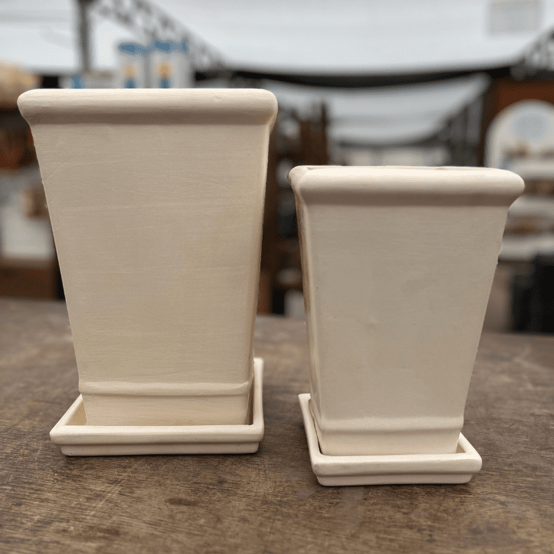 El Macetero piramidal con plato está fabricado en cerámica blanca. Tenemos a disposición variedad de diseños y tamaños para lograr las mejores decoraciones en su hogar.